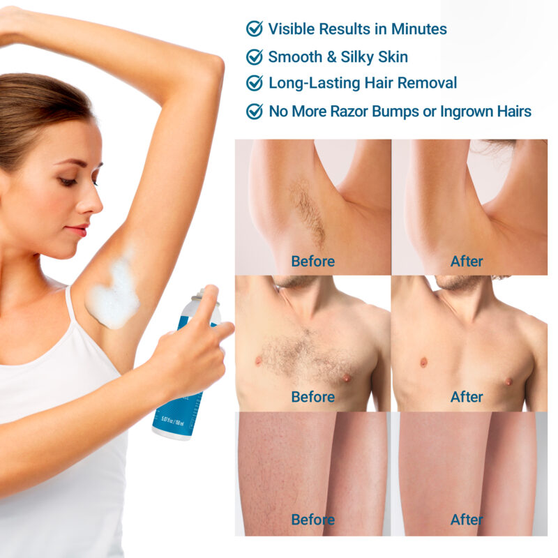 Quick and Painless Hair Removal Spray: Hair removal cream for women effectively breaks down hair’s keratin protein, allowing for easy and painless removal of unwanted body hair. Crema depiladora para mujer partes intimas.